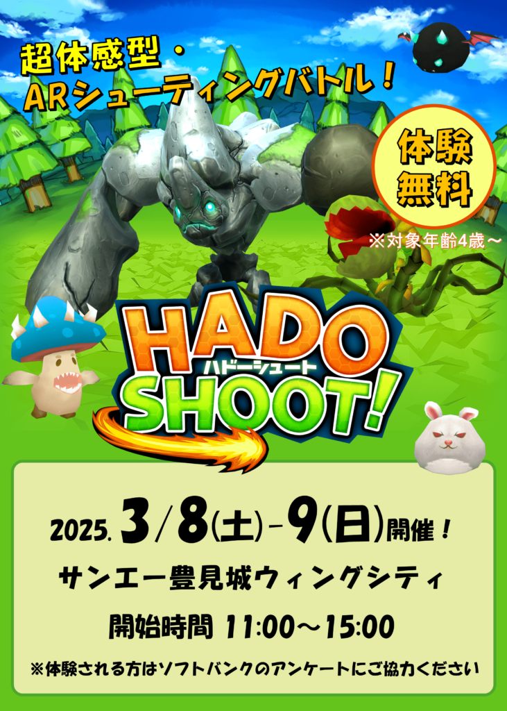 3/8(土)~3/9(月)の2日間、サンエー豊見城ウィングシティにて「HADOシュート!」が体験できます🍄💥