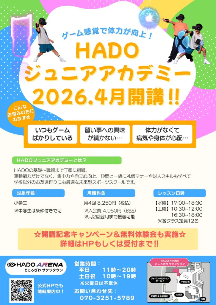 未来型スポーツスクール【HADOジュニアアカデミー】が4月よりところざわサクラタウン店で開講決定!!