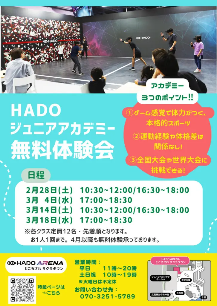 ご相談・ご予約などに関しましてはHADO ARENA ところざわサクラタウン店公式LINEのメッセージもしくはお電話(070-3251-5789)にて承ります!!