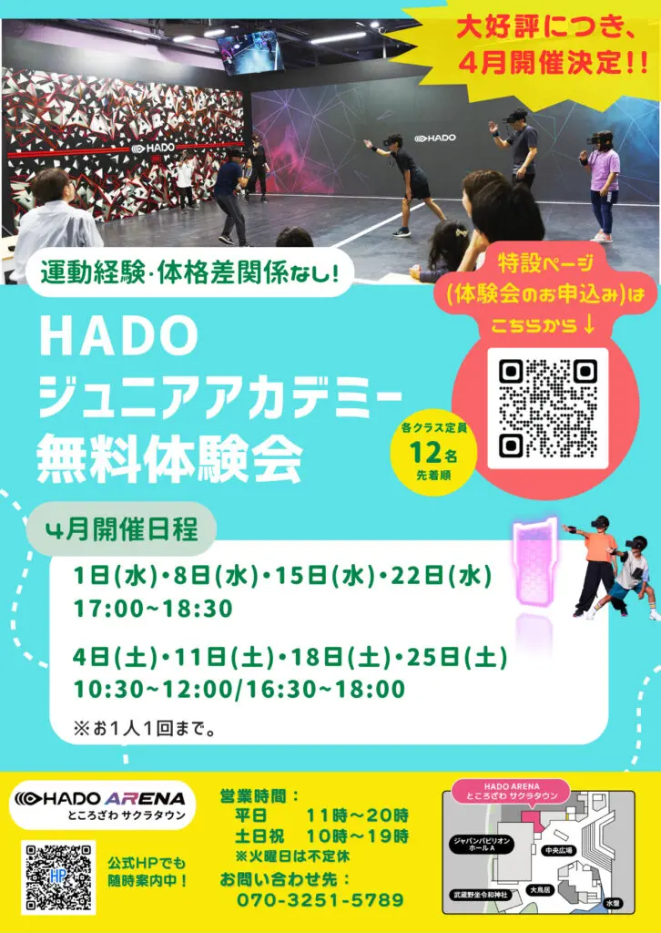 ご相談・ご予約などに関しましてはHADO ARENA ところざわサクラタウン店公式LINEのメッセージもしくはお電話(070-3251-5789)にて承ります!!