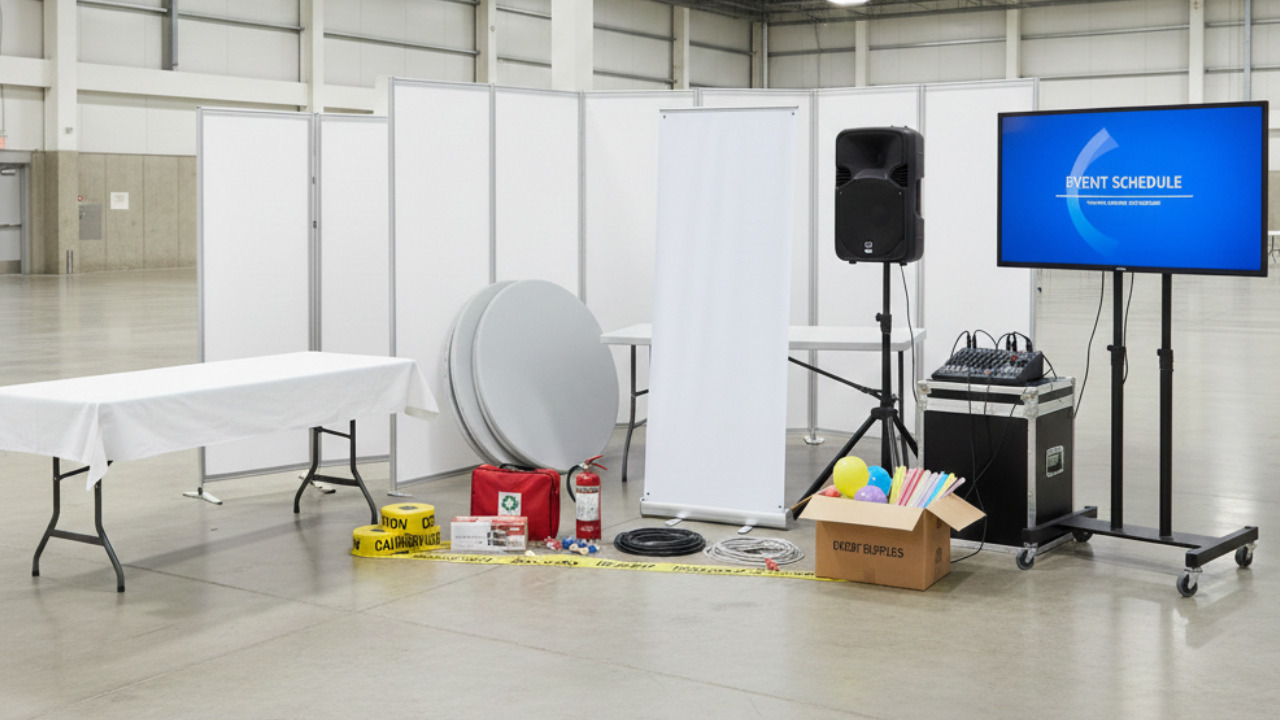 パーテーションやモニターをはじめ、受付・控室・導線整理などに必要な各種備品をレンタル可能です。