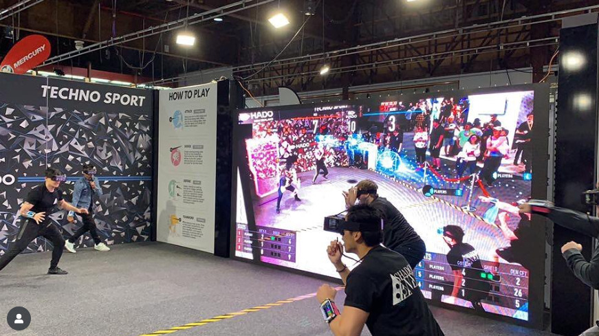 「HADO」は、既存のフィジカルスポーツとデジタル技術を融合させた、新しいスポーツの形「テクノスポーツ」です。頭にヘッドセット、腕にセンサーを装着し、エナジーボールやシールドを駆使して戦います。