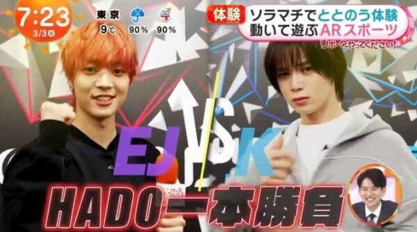 番組内のコーナー「&TEAMが“体ととのう”新スポット巡り」において、東京ソラマチ®内の HADO ARENA 東京ソラマチ が取り上げられ、グローバルグループ &TEAM の K さん、EJ さんにHADOを体験していただきました。